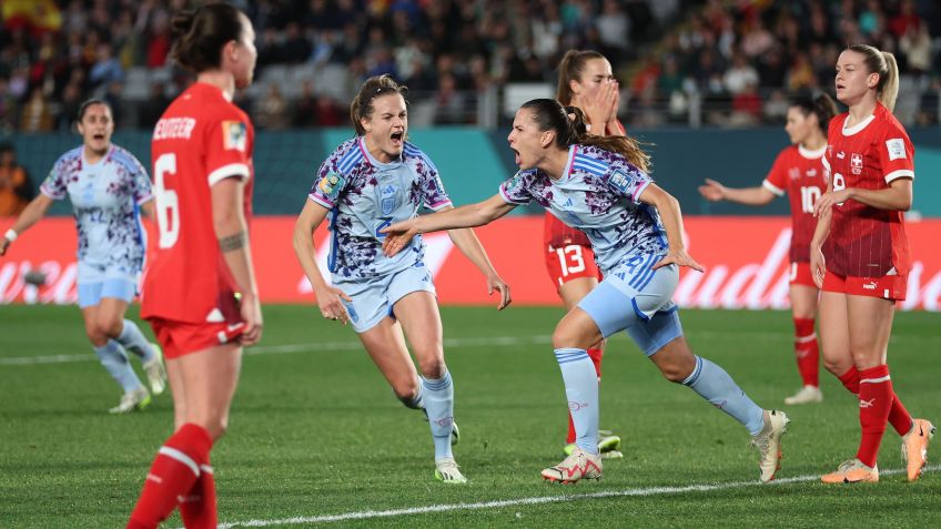 Aos quatro minutos, Aitana Bonmatí abriu o placar para as espanholas, aproveitando um longo bate e rebate na área adversária. Foi o primeiro gol sofrido pela suíças nesta Copa.