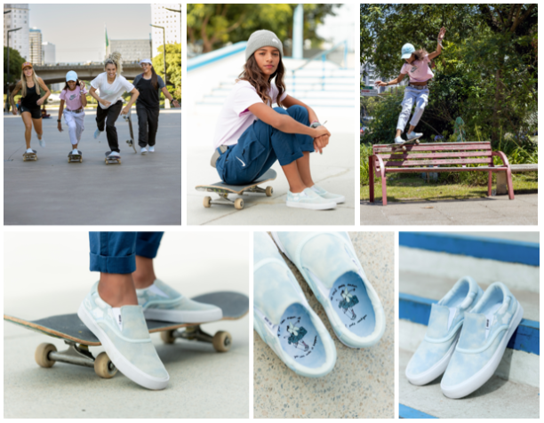O modelo tem cores que remetem às pistas de skate da Olimpíada de Tóquio, realizada em 2021, quando Rayssa conquistou a medalha de prata na estreia da modalidade nos Jogos Olímpicos.