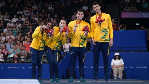 A natação garantiu mais uma medalha ao Time Brasil nos Jogos Paralímpicos Paris 2024. Após Lídia Cruz ficar em terceiro nos 150m medley SM 4, o revezamento do Brasil ganhou a medalha de bronze nos 4x100 livre S14 (atletas com deficiência intelectual).