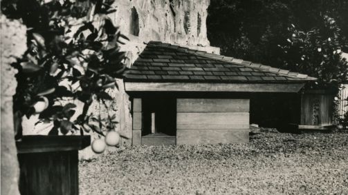 Jim Berger cresceu em uma casa em San Anselmo, Califórnia, que seus pais encomendaram a Wright para projetar, de acordo com Marin County. Em 1956, quando Berger tinha 12 anos, ele enviou uma carta a Wright pedindo planos para uma casinha de cachorro para seu labrador, Eddie.