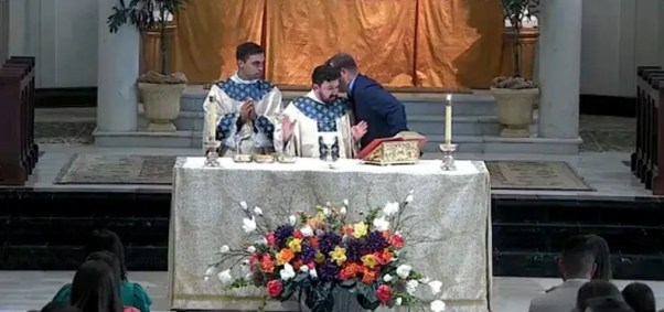 Na Louisiana, o vídeo do culto transmitido online mostra o pastor associado, padre Nicholas DuPré, conduzindo a missa quando alguém se aproximou do altar e o interrompeu no meio da oração para sussurrar em seu ouvido.