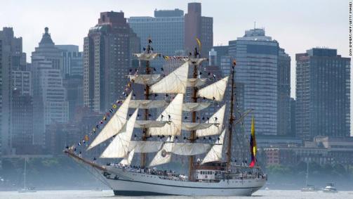 O veleiro de 78 metros de comprimento, movido por mais de 1.393 metros quadrados de velas penduradas em três máscaras altas, estava em um cruzeiro de treinamento quando avistou o navio de transporte de drogas e parou, disseram militares equatorianos.