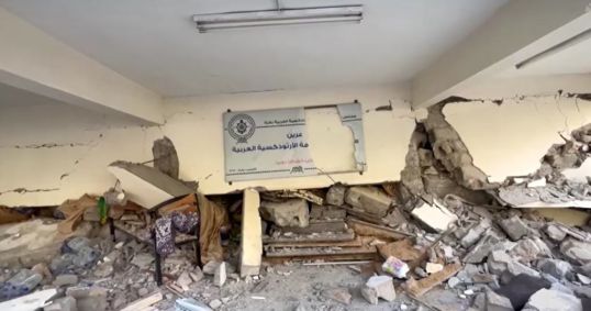 O ataque aéreo, que danificou parte da Igreja Ortodoxa Grega de São Porfírio, na Faixa de Gaza, foi “um novo massacre” e “um ataque à herança cristã”, de acordo com Atallah Hanna, arcebispo ortodoxo grego de Sebastia, em Jerusalém.