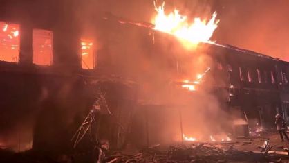Não ficou imediatamente claro qual instalação estava queimando. Imagens de vídeo mostraram chamas enormes vindas do que parecia ser um prédio industrial.