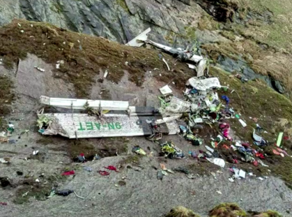 Operado pela Tara Air, de propriedade privada, a aeronave caiu com tempo nublado na manhã de domingo e os destroços não foram vistos até segunda-feira de manhã pelo exército do Nepal.