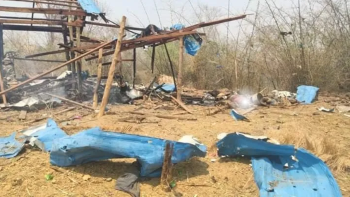 A agência de notícias local The Irrawaddy informou que uma aeronave da junta lançou duas bombas e disparou contra a vila enquanto as pessoas se reuniam para a inauguração de um novo escritório municipal.