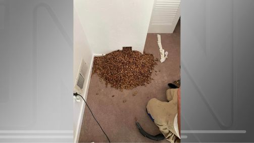 Depois de fazer um pequeno buraco de 10 centímetros na parede, Castro disse que as bolotas começaram a cair. Isso por si só não seria muito incomum, mas "elas continuaram chegando", disse.