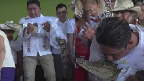 A cidade de San Pedro Huamelula, no México, mantém uma tradição inusitada: todos os anos, o prefeito do local se casa com um jacaré-fêmea.