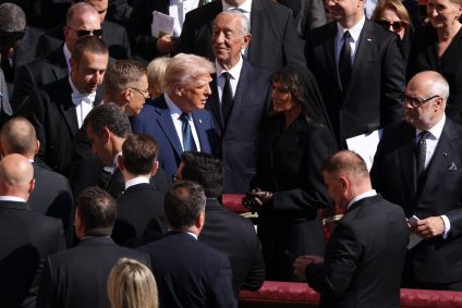 “‘Construam pontes, não muros’ foi uma exortação (de Francisco) repetida muitas vezes, e seu serviço de fé como Sucessor do Apóstolo Pedro sempre esteve ligado ao serviço da humanidade em todas as suas dimensões”, disse o cardeal perto do final da homilia, com Trump entre a plateia repleta de líderes mundiais que estavam ouvindo.