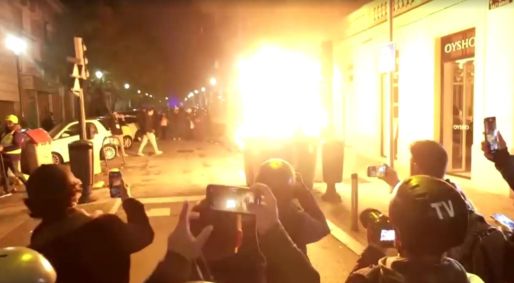 As tensões aumentaram depois que os manifestantes atiraram latas de cerveja, garrafas, fogos de artifício e foguetes contra a polícia e jornalistas. Eles chamaram os agentes de "cães de Sánchez" e acusaram a imprensa espanhola de manipular a opinião pública.
