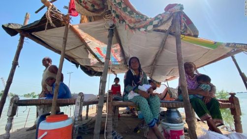 Em todo o Paquistão, outros como Solangi estão sobrevivendo com alimentos racionados deixados por trabalhadores humanitários enquanto esperam que as águas recuem. Cerca de 10 famílias estão amontoadas com Solangi na faixa de terra que em alguns pontos tem menos de cinco metros de largura apenas.
