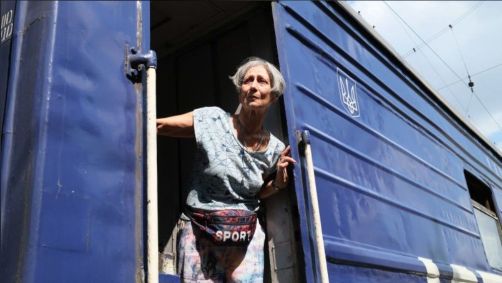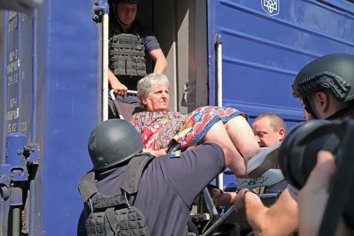 A família hesitava em deixar Pokrovsk porque Liubov, de 70 anos, sofreu um derrame recentemente e agora não consegue falar ou andar. Quando três policiais, usando coletes à prova de bala e capacetes, a carregaram para dentro do trem, ela parecia completamente estoica, seu rosto não demonstrando nenhuma emoção.