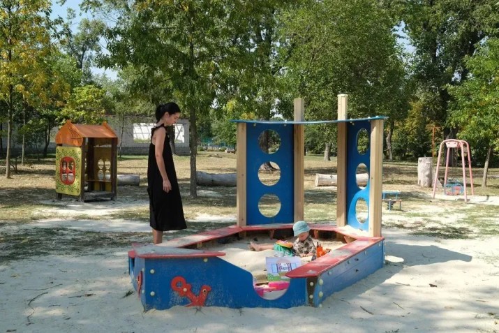 Arina o levou ao playground para protegê-lo do caos em casa, fingindo que tudo estava como deveria ser. Em um sábado ensolarado de verão, o playground normalmente estaria repleto de famílias com crianças. Mas nada é normal em Pokrovsk agora.