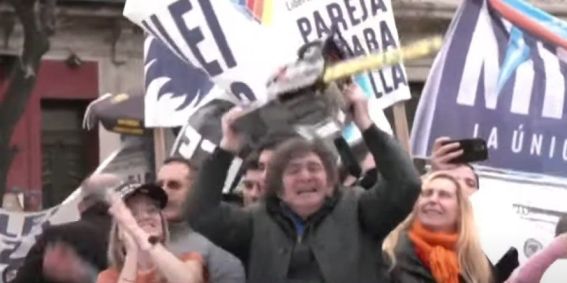 Suas repetidas aparições empunhando uma motosserra em paradas de campanha — como fez no comício descrito acima na cidade litorânea de Mar del Plata, em 12 de setembro — simbolizam promessas de cortar drasticamente as despesas do governo, eliminar os subsídios públicos e "romper com o status quo”.