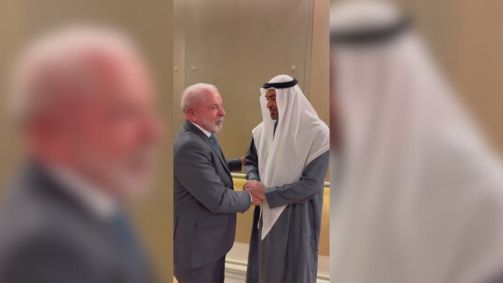 O presidente Luiz Inácio Lula da Silva (PT) se reuniu com o presidente dos Emirados Árabes Unidos, Sua Alteza xeique Mohammed bin Zayed Al Nahyan, nesta terça-feira (24), no Aeroporto Internacional de Abu Dhabi.