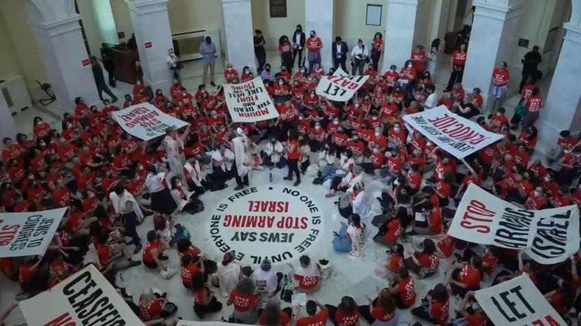 Também foram registrados protestos pró-Palestina na terça-feira (23), dentro do Capitólio, sede do Congresso americano.