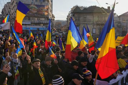 No domingo, milhares de manifestantes, incluindo esquerdistas e aqueles indignados com a forma como as eleições foram canceladas, se uniram ao protesto organizado pela oposição de extrema-direita Aliança para a União dos Romenos (AUR), o segundo maior partido da Romênia.
