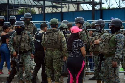 Na cidade de Guayaquil, pelo menos 2.700 militares e policiais fortemente equipados entraram na Penitenciária do Litoral, após a promulgação da medida de 60 dias, retomando o controle de três blocos de celas com detonações controladas.