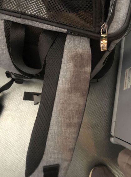 “Eu não sabia que era sangue até que um comissário de bordo disse, casualmente: 'Ouvimos que outro passageiro teve uma hemorragia'”, diz Battah. “Então, notei que a caixa de transporte do gato também estava manchada”. O sangue havia encharcado a transportadora, que funciona como uma mochila.