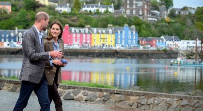 Em vez de celebrar a ocasião em casa, o príncipe e a princesa de Gales retornaram à Escócia para uma visita de dois dias às Ilhas de Mull e Iona, parte do arquipélago das Hébridas, na costa oeste do país.