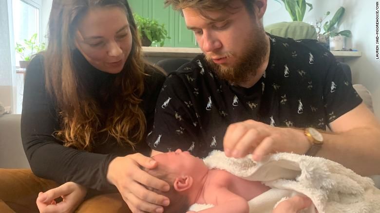 Anna-Mariia Nykyforchyn, à esquerda, e o marido Nazar, à direita, olham para a filha de um mês, Marharyta / CNN"Tive uma experiência muito difícil de ficar na Polônia tanto fisicamente, por causa do bebê, quanto mentalmente. Foi mais do que difícil, insuportável", diz ela.