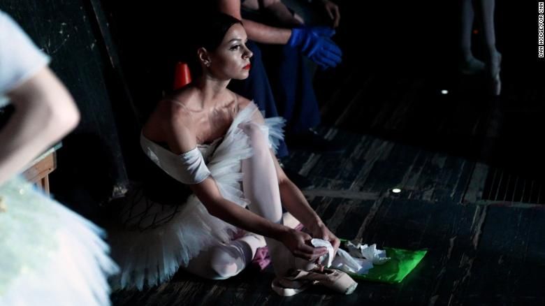 "Nós nos acostumamos com isso. E é horrível termos nos acostumado", desabafou a bailarina Katryna Kalchenko enquanto se preparava para uma apresentação na casa de ópera em Odesa.