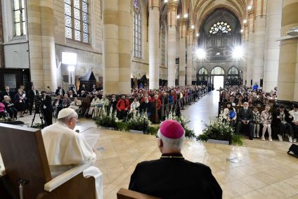 Francisco se encontrou com cerca de 600 refugiados, pessoas pobres e sem-teto em uma visita à igreja de Santa Isabel em Budapeste no segundo dia de sua visita, que começou na sexta-feira, quando ele alertou sobre os perigos do nacionalismo crescente na Europa.