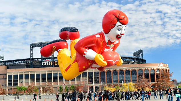É um novo design para o personagem que já faz parte do desfile desde 1987 – porque nada é mais familiar ao Dia de Ação de Graças do que um palhaço de fast food com 3,5 metros de altura.