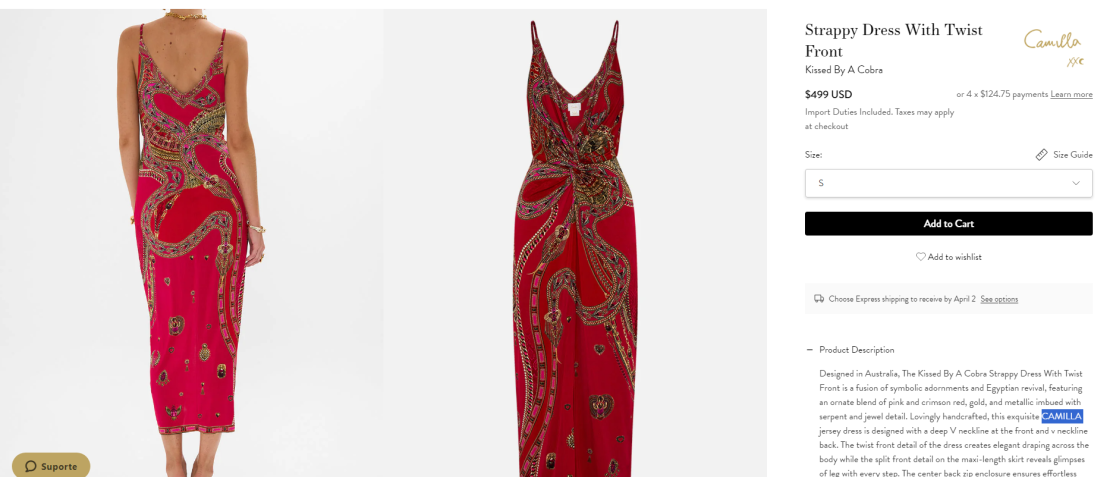 A cantora Anitta usou um vestido da marca Camilla, da estilista Camilla Franks, no início das comemorações de seu aniversário de 32 anos nesta terça-feira (25). O modelo escolhido pela artista está disponível por cerca de R$ 2.800 no site oficial da grife.