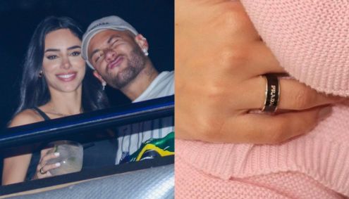 Bruna Biancardi, 30, foi vista usando um anel grifado desde que assumiu sua reconciliação com Neymar, 32. O acessório faz parte do catálogo da Prada e custa R$ 2,5 mil.