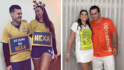 Fazendo referência um dos casais mais comentados nas redes sociais, Virginia e Vini Jr. podem ser a inspiração do look. Com uma camiseta do Brasil ou do Real Madrid – atual time do jogador – e acessórios da WePink, marca da influenciadora, é possível se transformar brevemente na dupla.