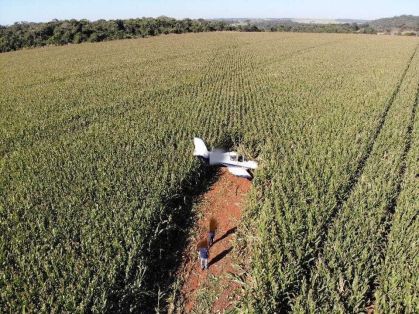 Um avião monomotor fez uma aterrizagem forçada em um milharal na cidade de Luziânia, em Goiás — 195 quilômetros de Goiânia — por volta das 10 horas da manhã deste sábado (3).