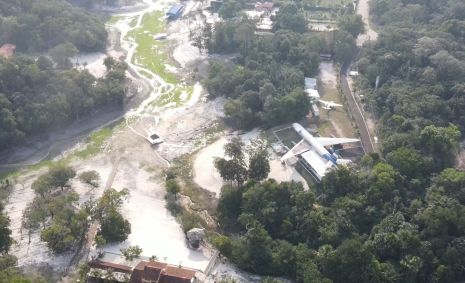 Imagens feitas na tarde deste domingo (2) mostram a Praia do Avião, local frequentado principalmente aos fins de semana na cidade. A diferença na paisagem pode ser vista se comparada com imagens captadas em julho, época em que o rio está cheio.
