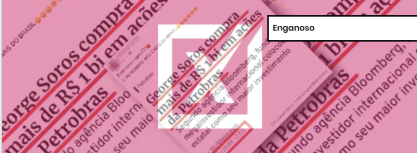 A publicação também não explica que Soros vendeu, após negociações ao longo de oito anos, todas suas ações da Petrobras em 2016. De qualquer forma, mesmo que o investidor continuasse com os papéis, isso não faria dele controlador da empresa brasileira. O controle da petrolífera pertence ao governo federal, que detém mais de 50% das ações ordinárias da companhia.
