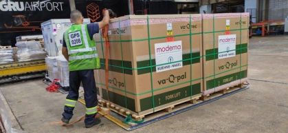 O lote dos imunizantes chegou ao Aeroporto Internacional de Guarulhos, em São Paulo, na manhã desta quinta-feira, por volta das 7h20.