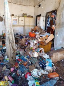 Até o momento, a ação já retirou diversos materiais inutilizáveis do imóvel, como entulho, roupas e alimentos estragados.