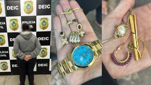 A prisão aconteceu no momento em que a suspeita cometia mais um furto no local. Ela foi abordada ao sair do prédio, ainda em posse de dinheiro, joias e bijuterias que havia acabado de roubar. Os objetos foram reconhecidos pelas vítimas.