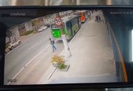 Imagens de câmeras de segurança registraram o momento em que o condutor da moto faz uma conversão irregular e é atingido pela viatura.