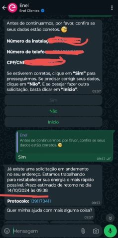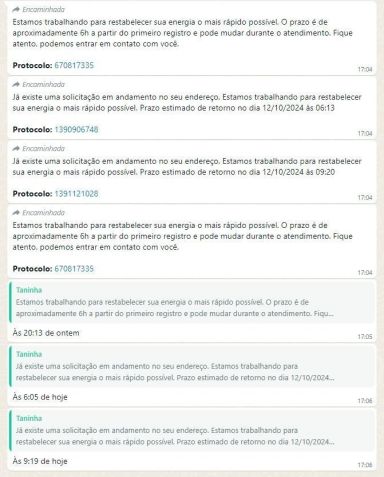 Questionada pela CNN, a Enel, no entanto, afirmou que um erro no sistema gerou mensagens para os clientes com o prazo de segunda-feira (14). "Trata-se de uma falha na programação da resposta automática do canal de atendimento pelo WhatsApp, que já foi corrigida".