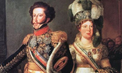 A esposa, Maria Leopoldina, da Áustria, chegou ao Brasil em 1817. Foi só então que conheceu o marido, consequência de um casamento acordado por procuração.