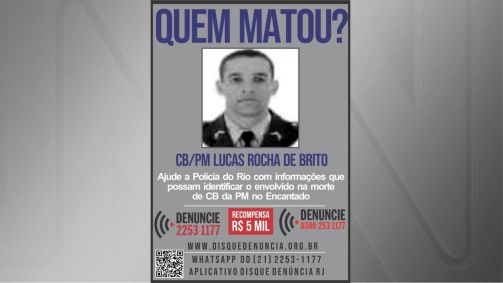 O Disque Denúncia divulgou um cartaz com o objetivo de obter informações sobre o envolvido na morte de Lucas Rocha de Brito, de 39 anos, que era cabo da Polícia Militar do Rio de Janeiro e morreu baleado após uma discussão de trânsito na Zona Norte do Rio, em 17 de maio.