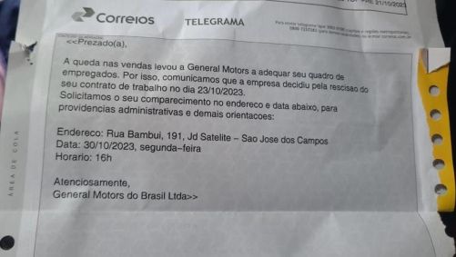 Alguns metalúrgicos foram avisados das demissões por telegrama, de acordo com o Sindicato dos Metalúrgicos de São José dos Campos e região. Os funcionários também estão sendo comunicados por e-mail.