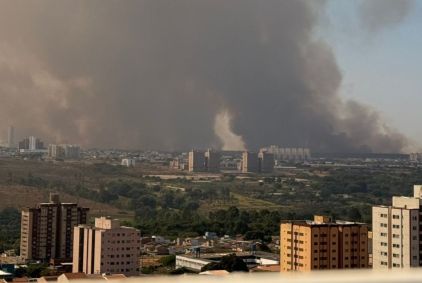 "Os profissionais estão em combate, tentando debelar o fogo, mas as altas temperaturas, o clima seco, o vento e as chamas intensas têm dificultado bastante a atuação," informou o Corpo de Bombeiros.