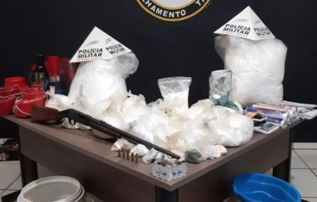 No local, os policiais apreenderam cerca de 100kg de cocaína além de armas, munições, porções de maconha, caderno de anotações com movimentações de venda de entorpecentes, uma balança de precisão, cinco liquidificadores com resquícios de cocaína, aparelhos celulares; dois tambores com resquícios de cocaína e quatro tonéis que estavam enterrados nos fundos do curral da propriedade, em dois deles foram encontrados dois sacos grandes que continham cocaína.
