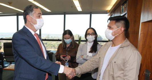 O ministro Luís Roberto Barroso, do Supremo Tribunal Federal (STF), se reuniu, na tarde desta terça-feira (21), com Beto Marubo, uma das lideranças da União dos Povos Indígenas do Vale do Javari (Univaja), e com a secretária-geral do Ministério Público da União, Eliana Peres Torelly de Carvalho.