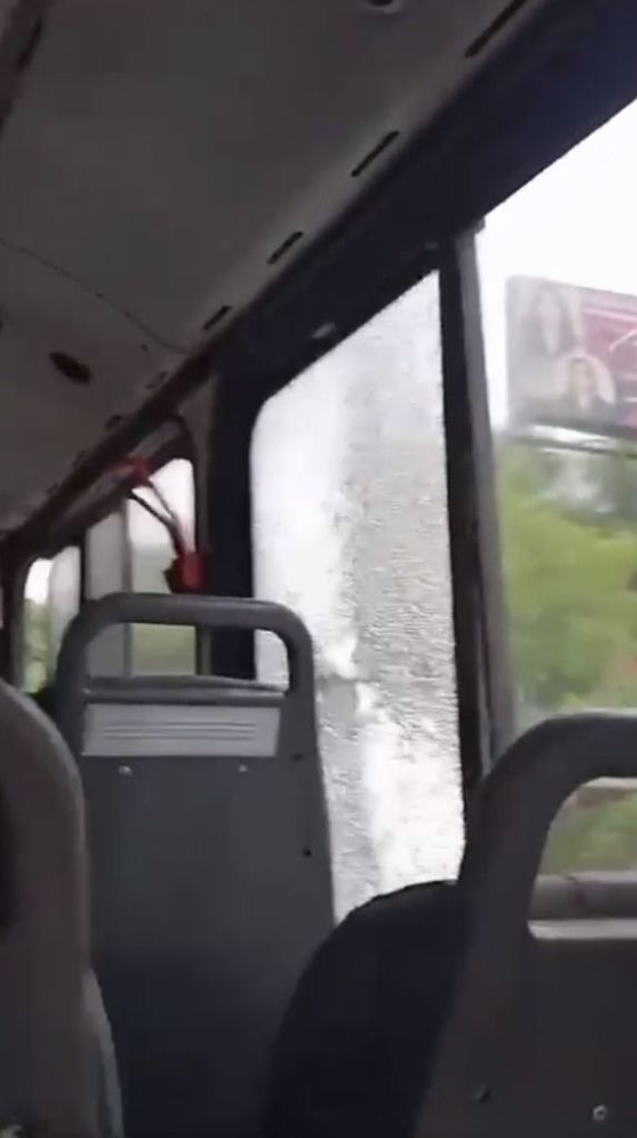 Outro vídeo mostra como ficou um dos ônibus atingidos por disparos: