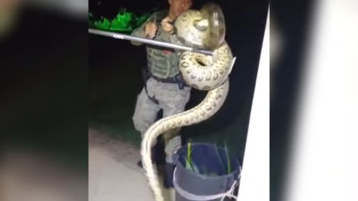 Vídeo: Sucuri de dois metros é capturada por PMs em Salvador