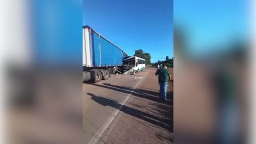 Segundo informações iniciais, o caminhão seguia à frente do ônibus e teria freado de forma brusca, impedindo que o motorista do coletivo conseguisse evitar o impacto.