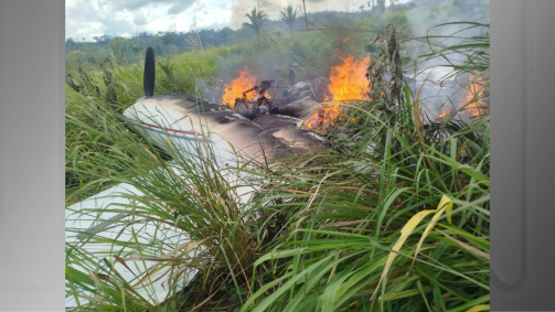 Após ser obrigada a pousar em uma área de vegetação, próxima à comunidade de Travessão do Cajueiro, a 150 km de Altamira, o avião foi incendiado pelos próprios tripulantes.