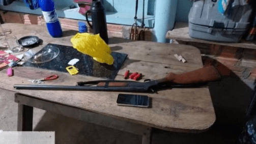 O homem, que estava dentro da casa, foi preso e apresentado à delegacia. Além disso, a arma de fogo também foi apreendida pelos policiais.